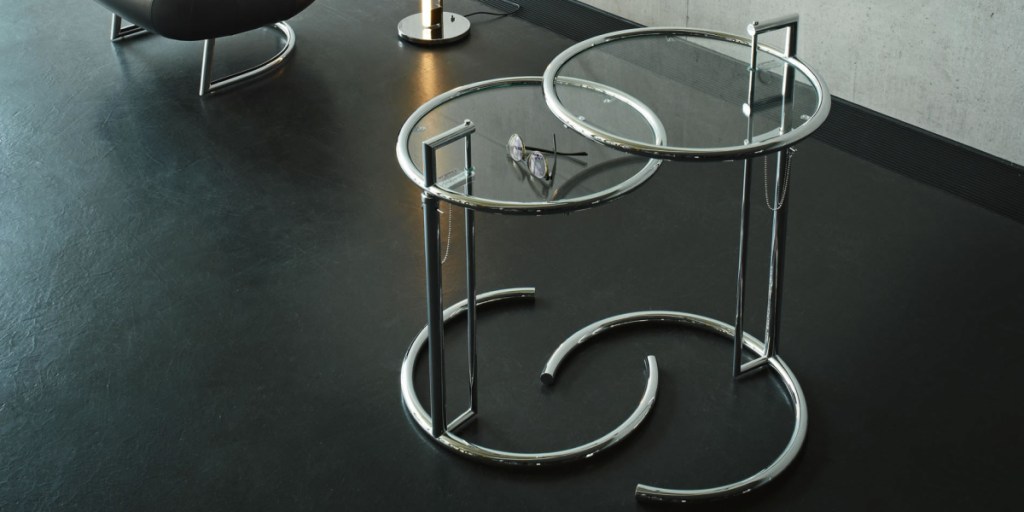 La table ajustable E1027, conçue en 1927, est une autre pièce emblématique. Sa conception astucieuse permet d’ajuster la hauteur, offrant une flexibilité d’utilisation qui était révolutionnaire à l’époque. Le nom « E1027 » est un code basé sur les initiales de Gray et de son compagnon de l’époque, Jean Badovici.
