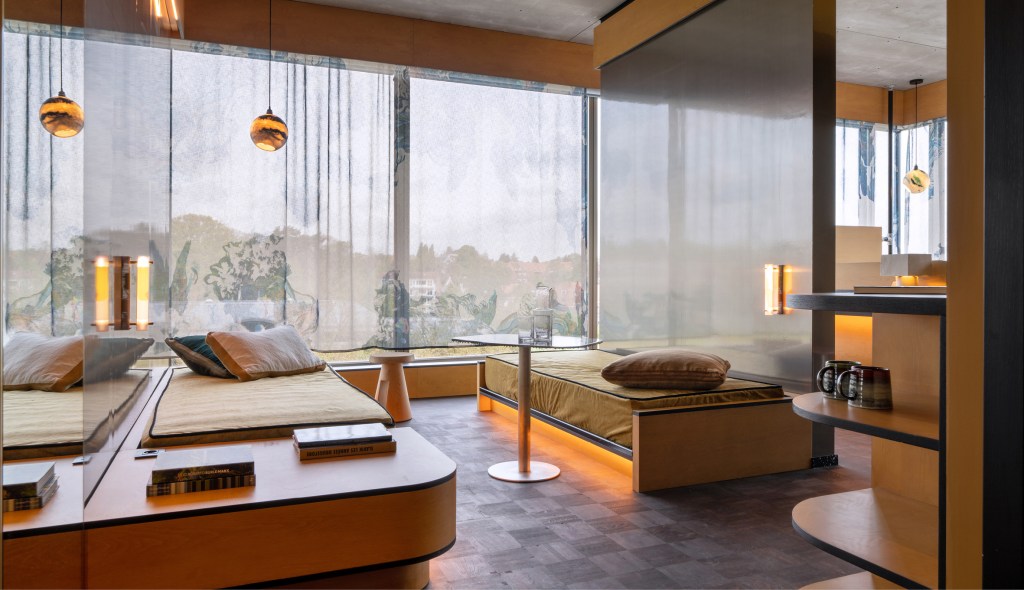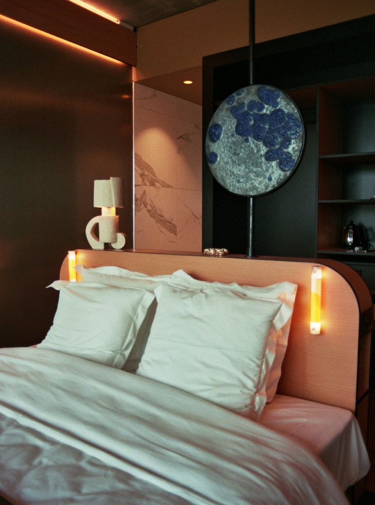 Un des projets phares de Jadot est Le Mix, un hôtel quatre étoiles à Bruxelles, installé dans l’ancien siège de la compagnie d’assurances La Royale Belge. Pour cette transformation ambitieuse, il a mobilisé 52 designers. Le style brutaliste du bâtiment a été revisité avec des finitions haut de gamme et un esprit chaleureux, créant une expérience d’hospitalité hors du commun. Le mobilier, conçu à moins de 50 km du site, est entièrement fait sur mesure, soulignant l’importance du collectible design dans la philosophie de Jadot.