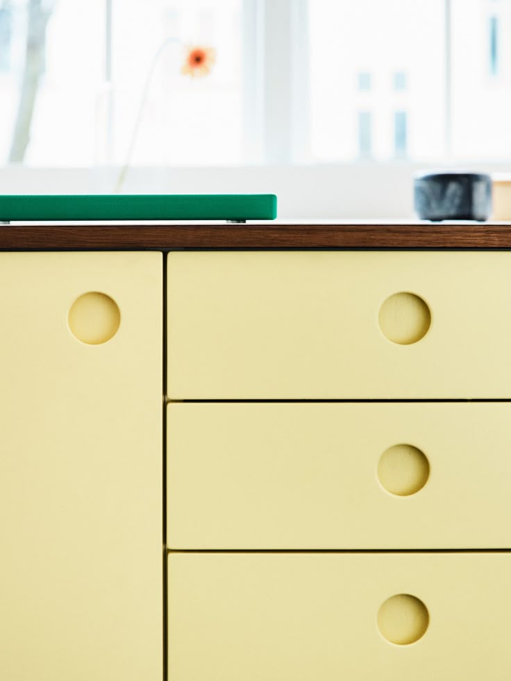 Le Butter Yellow, littéralement “jaune beurre”, évoque une teinte pastel très claire, légèrement dorée, presque crémeuse. À mi-chemin entre le jaune vanille, l’ivoire et le crème, il diffuse une lumière douce, évoquant les intérieurs solaires des années 70, réinterprétés dans un style contemporain et minimaliste.