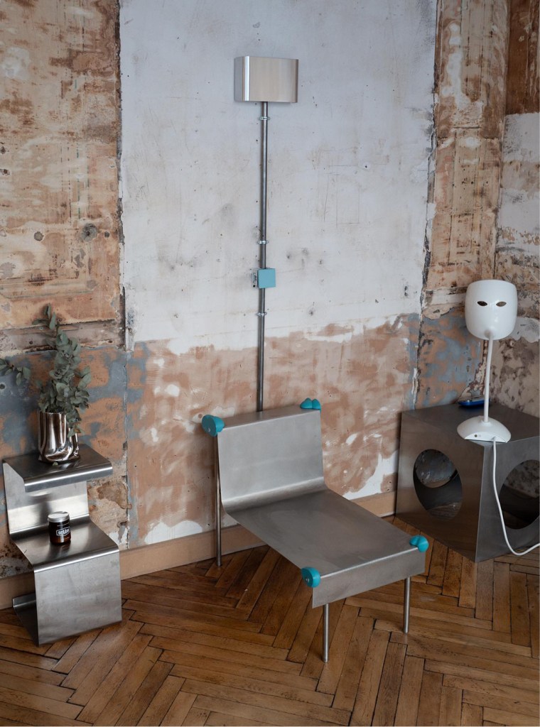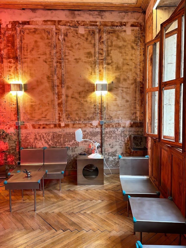 Le lieu s’ouvre sur un décor au style épuré, mêlant matières brutes et finitions métalliques, dans une ambiance à la fois chaleureuse et futuriste. Les murs aux textures contrastées, les surfaces en béton ciré, les éléments en acier brossé et les touches de bois clair créent un cadre à la fois structuré et accueillant. La lumière naturelle, filtrée par de larges baies vitrées, vient souligner la richesse des matériaux et invite à la détente.