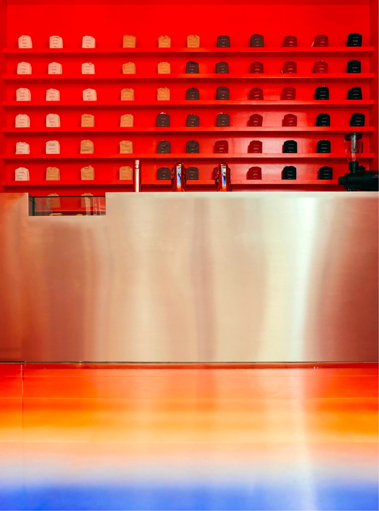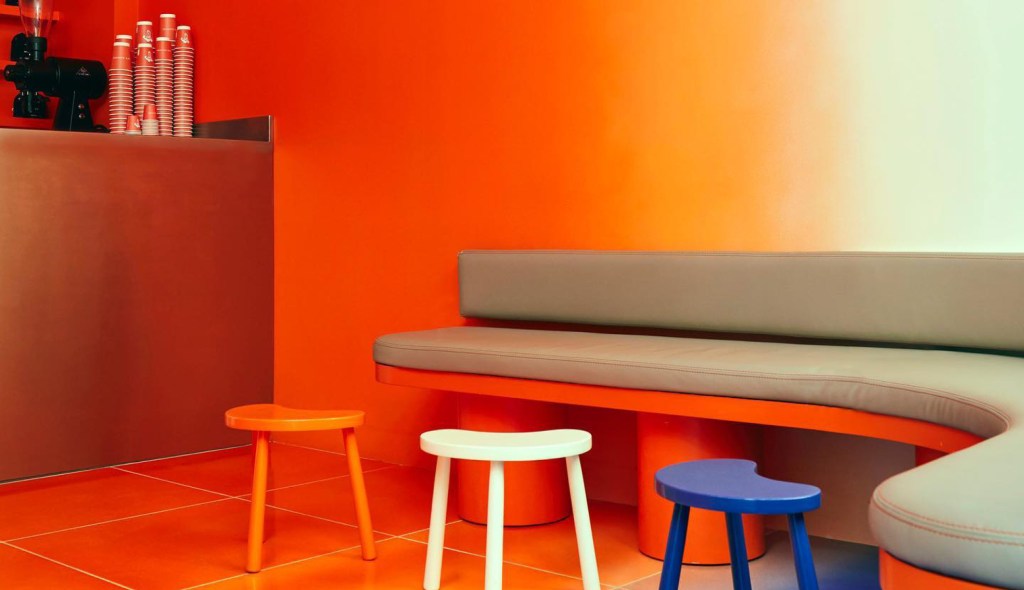 Le Café Nuances se distingue par son esthétique audacieuse et son approche innovante du café de spécialité. Conçu par le studio Uchronia, le lieu offre une immersion dans un univers coloré et lumineux, où la décoration mêle mosaïques miroir, laque mandarine et plafonds aux rayures arc-en-ciel. L’ambiance évoque une boule à facettes contemporaine, créant une atmosphère à la fois dynamique et chaleureuse.