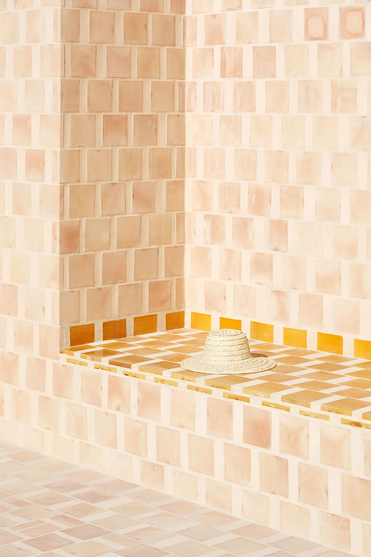 • Le grès cérame façon pierre ou terrazzo structure visuellement l’espace et crée un jeu de matière.