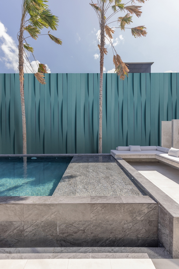 • Parement pierre, bardage bois, claustra géométrique ou panneau aluminium découpé : l’idée est de rythmer la verticalité.