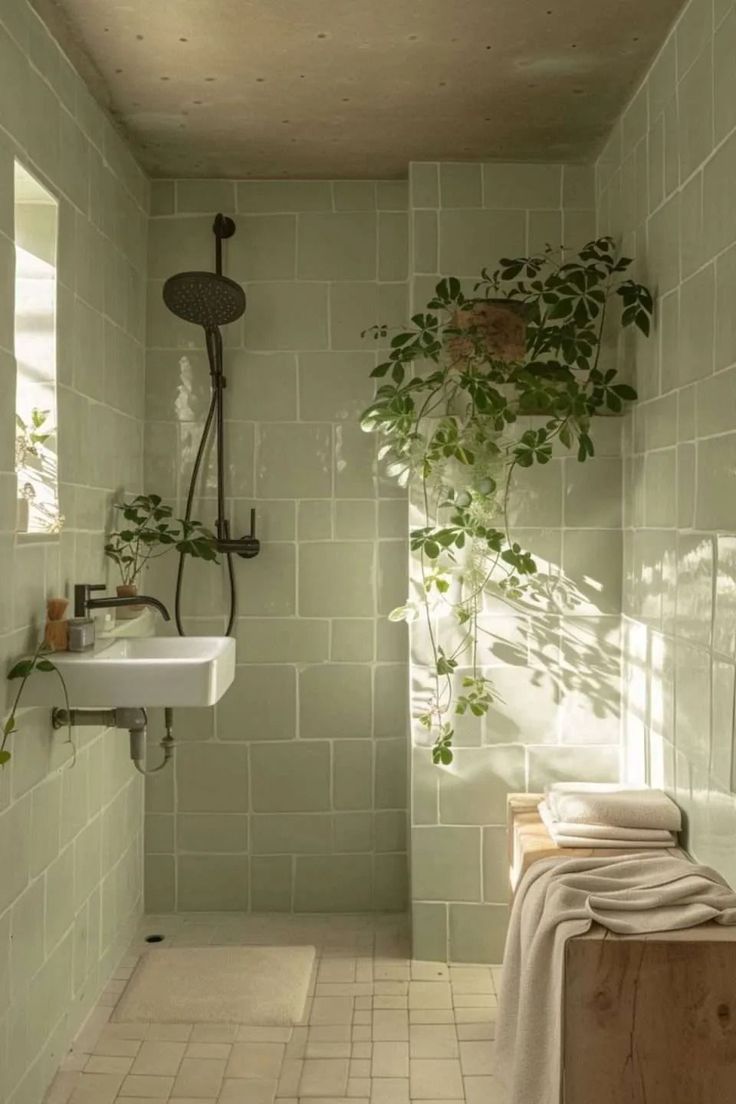 Le vert d’eau fonctionne parfaitement avec des matériaux naturels et des textures variées. Voici quelques associations gagnantes :