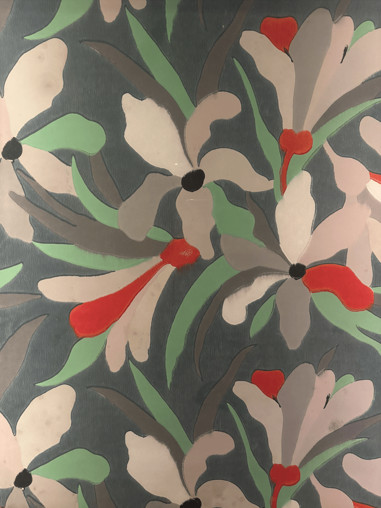 Le vocabulaire décoratif de Poiret est reconnaissable : rouges profonds, ors chauds, verts émeraude et bleus électriques se mêlent aux tons plus doux pour créer un équilibre subtil. Les motifs floraux, géométriques ou inspirés des arts décoratifs orientaux apportent du rythme et de la vie aux intérieurs.
